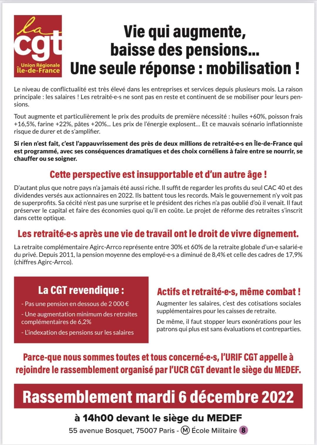 RASSEMBLEMENT MARDI 6 DÉCEMBRE 2022